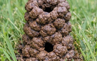 Danes zjutraj sem sredi trate opazil ta stolp blatnih kep. Visok je približno 10 cm z luknjo na sredini. Kaj ga je naredilo?