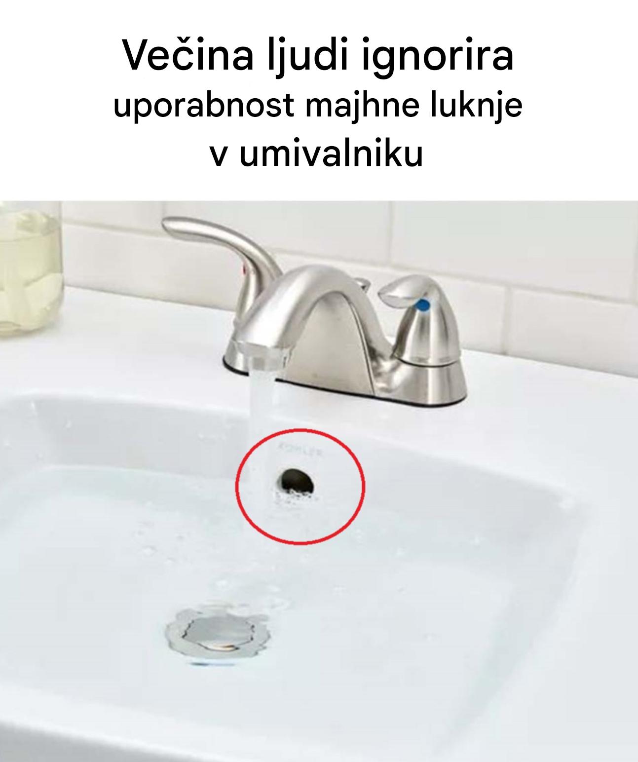 Verjetno ste jo že opazili, ne da bi bili zares pozorni. Tista majhna, diskretna odprtina, tik pod pipo v kopalnici, ste morda spraševali, čemu služi ... ali pa je morda še nikoli niste videli. Pa vendar ima veliko boljšo uporabno vlogo, ki jo morda predstavljate.