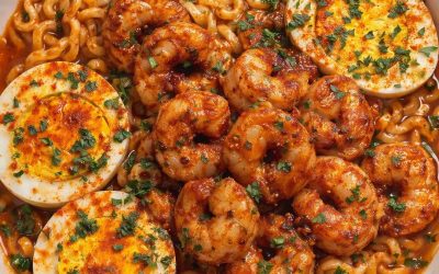 🌶️ Pikantni ramen s kozicami in jajci z marmelado 🕒 Čas 30 minut 🍤 Za 2–3 osebe ⸻ 🧄 Sestavine…