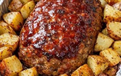 Preprosta mesna štruca in krompir, pečena v pečici Ta preprosta pečena mesna štruca s krompirjem je najboljša rešitev za naporne…