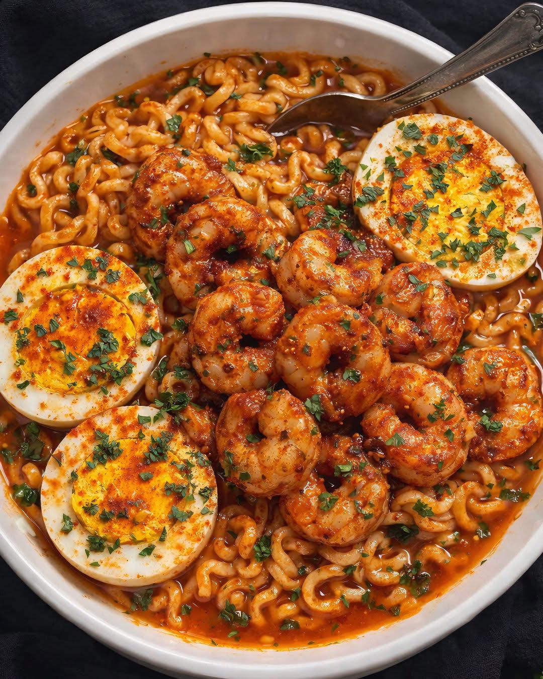 🌶️ Pikantni ramen s kozicami in jajci z marmelado