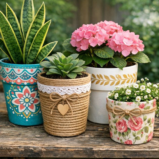 3. Ustvarite okrasne sadilnike z barvo, vrvjo ali tkanino