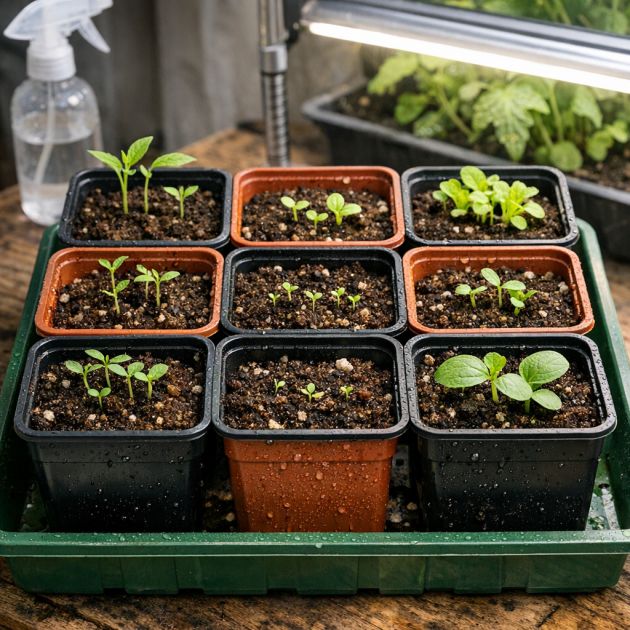 Semena posadite v skladu z navedenimi na embalaži, običajno na globini približno dvakratne globine premera semena. Tla naj bodo stalno vlažna, lončke pa postavite na sončno mesto ali pod rastne luči. Ko sadike rastejo, jih presadite v več posode ali neposredno na vrt. Ta metoda vam omogoča, da podaljšate rastno sezono in si zagotovite prednost z zdravimi rastlinami.