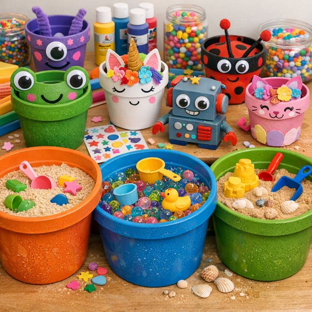 Plastični cvetlični lončki ponujajo odlično osnovo za različne otroške ustvarjalne projekte. Otroci lahko lončke pobarvajo in okrasijo ter ustvarijo domiselne like ali mini lončke za svoje sobe. Zagotovite jim nestrupene barve, nalepke in okraske, ki bodo spodbudili ustvarjalnost.