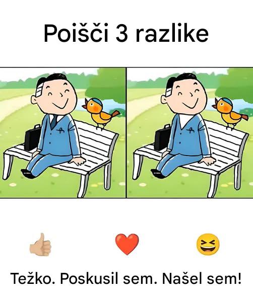 Ali uživate v nenavadnih izzivih? Takšnih, ki vam izostrijo oko in hkrati prebudijo tekmovalnega duha? Potem je ta igra opazovanja za vas. Na prvi pogled dve skoraj enaki podobi mirnega prizora v parku. Vendar vam manjka ena podrobnost ... oziroma kar tri! In če imate le 15 sekund, da jih opazite, ali vam bo uspelo opraviti izziv brez goljufanja?